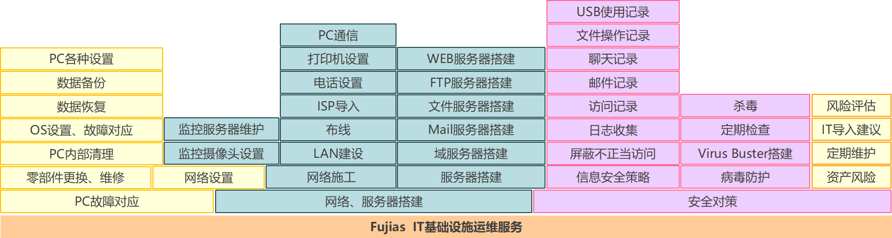 富佳為顧客提供全方位的“IT基礎設施運用維護”服務,對顧客的各種IT故障做出迅速、準確的對應,及時為顧客解決問題,解決顧客的各種需求?;谪S富經驗和精湛技術,力求避免顧客因IT故障而帶來的業務損失。